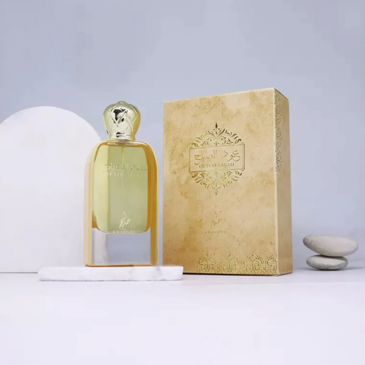Oud Al Sabah da Khadlaj é um Eau de Parfum sofisticado que evoca a energia de um novo amanhecer nas antigas terras orientais. A composição olfativa combina aromas aromáticos e orientais profundos com notas resinosas e amadeiradas. As notas de topo irradiam com lavanda e resinas, enquanto o coração revela a riqueza do Oud (Agarwood), proporcionando profundidade e caráter. As notas de fundo fundem baunilha e âmbar, criando uma textura quente e envolvente com excelente fixação. O frasco apresenta um design elegante com tonalidade dourada e tampa refinada, acompanhado por uma caixa decorativa com padrão tradicional que expressa a herança e o luxo do Oriente. Ideal para ocasiões especiais e para quem busca uma fragrância marcante e elegante.